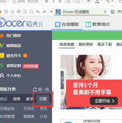 2.在模版分类找到“日程”,这里就有各种各样的日历