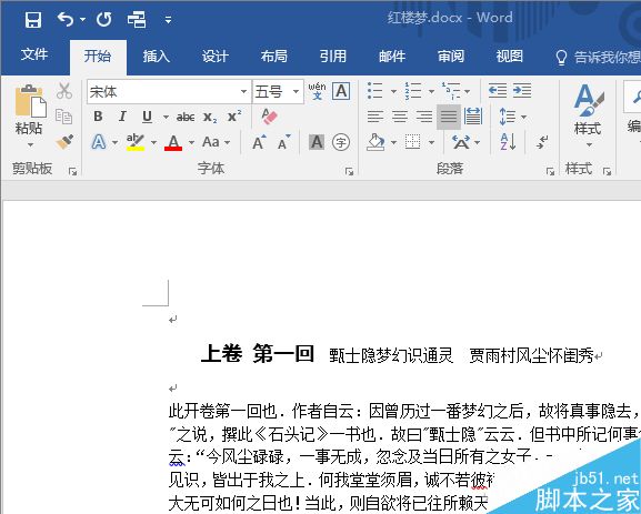 小编从网上下载的一本《红楼梦》,每个回目只有“上卷 第XX回”标注了加粗,看起来很不醒目。下面我们通过格式替换的方式,一键将所有“上卷 第XX回”加大字号,变成黑体,从而更突出。