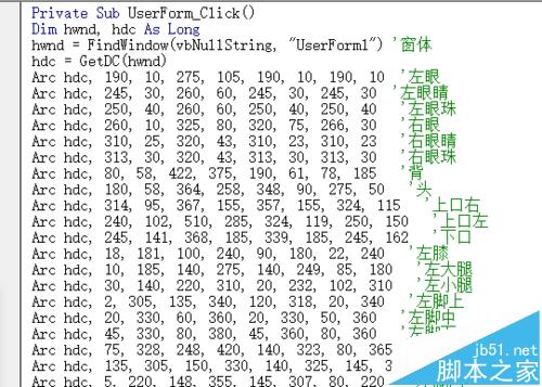 5、窗体编程。双击窗体进入编程界面,编写窗体单击事件触发的程序,调用模块1里声明的5个函数、1个结构编写程序。重点画好39个圆,这是前半部分。
