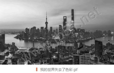 第一页和第二页是同一张图片,只不过是把第二张图片变成了黑白,然后加了一个淡出的效果。结果就变成了一张原本有色彩的世界慢慢变成了黑白。