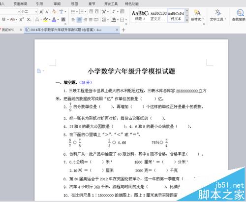 1、首先,打开你的a4试卷