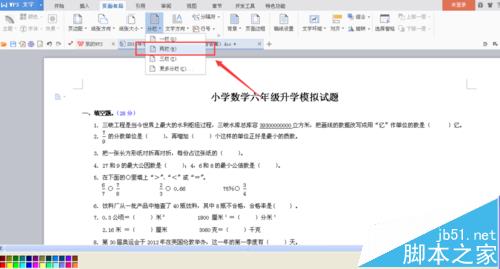 3、同时选定【横向】。这时候我们可以看到,原来A4排版的试卷已经变为A3的大题排版装了。