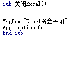 6、直接运行这个过程,弹出一个msgbox提示信息,excel将会关闭。同样会在退出前提示是否保存工作薄。大家按需要选择即可。