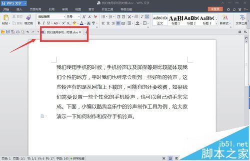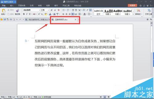 1、首先在我们的电脑上用WPS打开一个文档,该文档显示在上方的切换栏,如图所示。