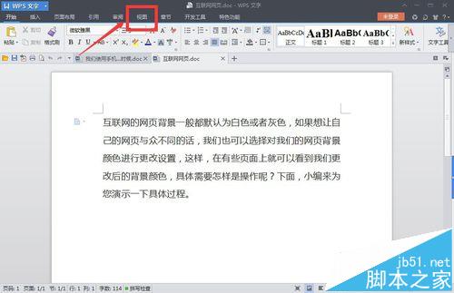 3、这时,两个文档的内容无法同时显示,只能来回切换才行。我们可以点击上面的“视图”菜单,如图所示。