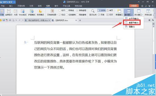 5、点击以后,出现了一个下来菜单,这个菜单中有三个选项,我们可以选择其中的一个,比如“垂直平铺”,如图所示。