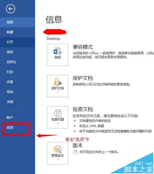 2、打开“word选项卡”,单击“文件”菜单项,然后点击“选项”,具体操作如下: