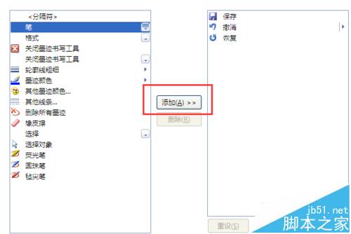 3、将“常用命令”选项改成“墨迹工具|笔 选项卡”