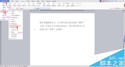 设置文字方向的方法有二种,一种方法是直接利用快捷命令的方式,另一种方法是利用“wps文字”下拉菜单中的“格式”命令来设置。