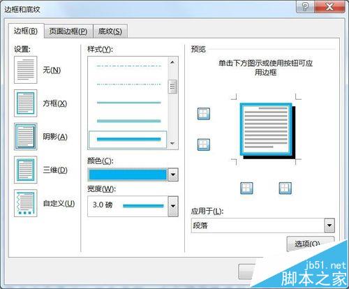 4、在弹出的“边框和底纹”对话框中选择“边框”选项卡
