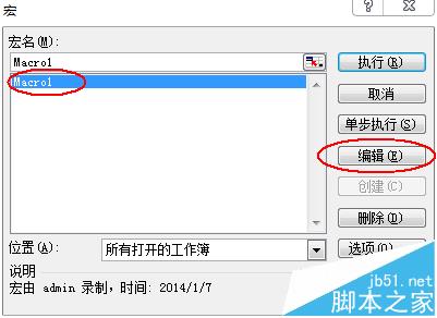 4、按alt+F8 进入执行对话框,选中刚才录制的宏,单击编辑进入VBE编辑器