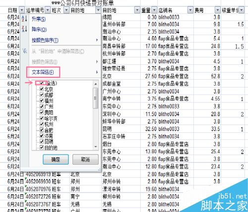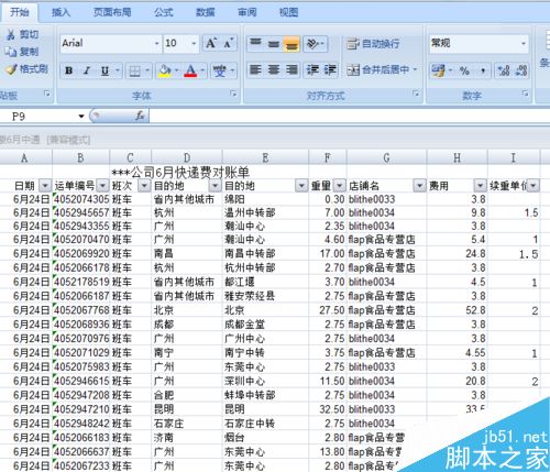 本篇文章,小编就以某公司6月的快递对账单进行举例说明。首先,我们打开这个EXCEL文件吧。 根据此表的内容,要求公司财务核对账务,运费标准是按地点远近、重量多少是分层次的,不是统一价。所以要想核对正确,必须按不同情况不同的报价进行分类核算。也就是说要用到数据筛选功能。