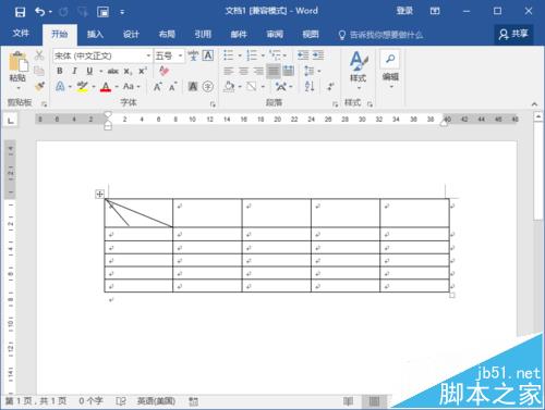 4、返回到Word编辑窗口,我们可以看到Word表格中的最基本的斜线表头就已经完成了。如图所示;