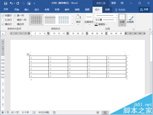 2、在打开的Word文档窗口,首先我们绘制一个表格,打开插入菜单选项卡,点击“表格”选线在弹出的菜单选项框中选择表格行数和列数,并在Word编辑窗口中绘制出来。如图所示;