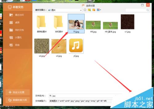 4、在“对象属性”对话框中,选中“图片或纹理填充”选项,再点击“本地文件”选项按钮。如图所示;