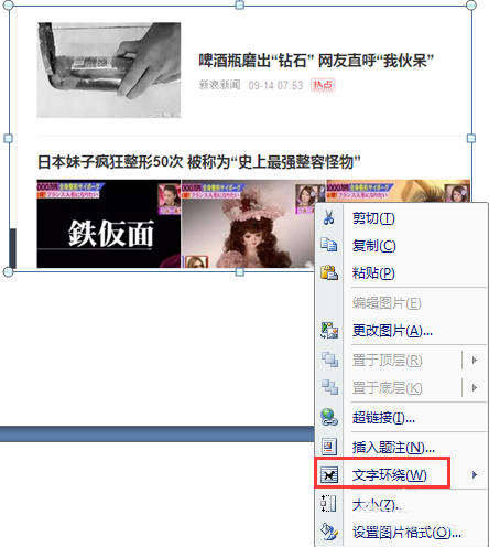 7、如果我们想要让图片不仅仅是在文字的下方,而是呈现在正中央或是其他的位置,那么我们同样可以右击图片选择文字环绕,里面可以进行文字与图片位置的设置。