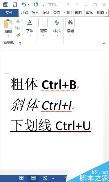 粗体Ctrl+B;斜体Ctrl+I;下划线Ctrl+U