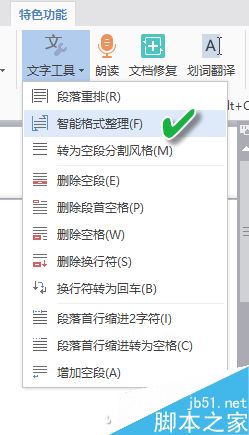 先用Ctrl+A全选文字,然后执行“文字工具”下的“智能格式整理”