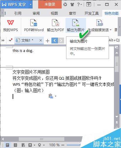 WPS“特色功能”下的“输出为图片”可一键将文本变成图片输出。
