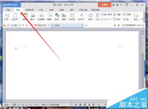 2、在打开的Wps文字程序窗口,打开“插入”菜单选项卡。如图所示;