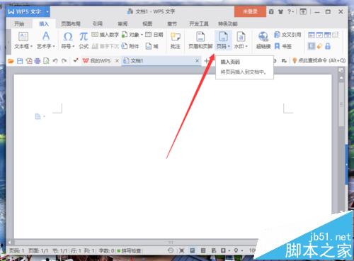 3、在插入菜单选项卡下,点击“页码”选项按钮。如图所示;