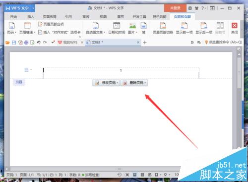 6、返回到Wps文档中,可看到页眉中间插入的页码效果。如图所示;