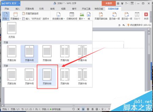 7、在页码选项框中,选中页脚下的“页脚右侧”选项点击它。如图所示;