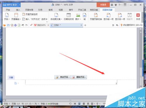 8、返回到Wps文档中,可看到页脚右侧插入的页码效果。如图所示;