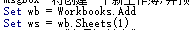 4、首先我们定义了了两个对象变量,分别是wb和ws。wb是创建的新的工作薄,使用工作薄对象workbooks后的add方法新建。因为新建的工作薄有默认的三个工作表,所以可以直接定义使用set来定义ws为wb的第一个序列工作表。