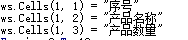5、这里我们使用单元格选择代码直接对单元格进行赋值。ws.cells(1,1)选取的就是a1单元格,可以对其直接赋值字符串“序号”,一次类推。顺序设置了产品名称和产品数量。