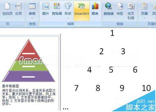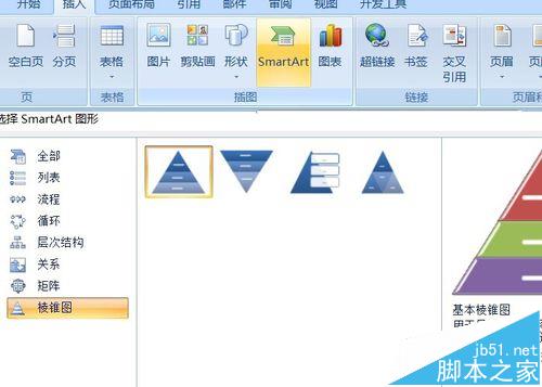 1、插入——SmartArt——棱锥图——基本棱锥图。