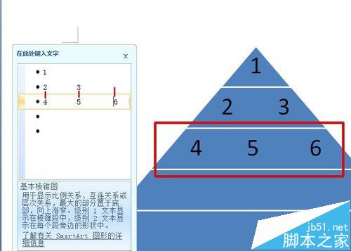 4、鼠标放在文本3中,按下两次回车,添加两个文本栏,同时图中金字塔也增加两层。
