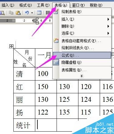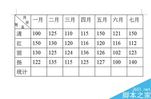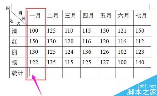 光标放在表格中的“一月”这栏下方的空白格内,表示要计算“一月”的总数,如图所示。