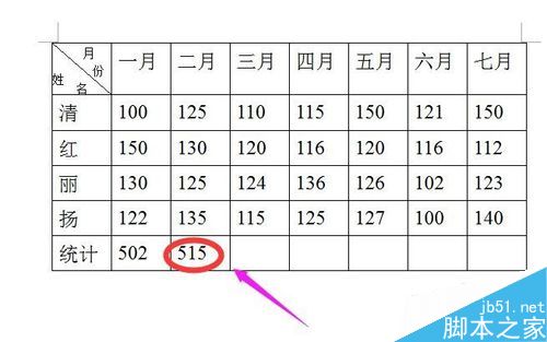 按步骤2和步骤3的操作,空白格内即显出”二月“这一栏的总数。
