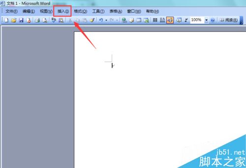 2、在这个打开的界面上面菜单栏里找到插入菜单,如图所示: