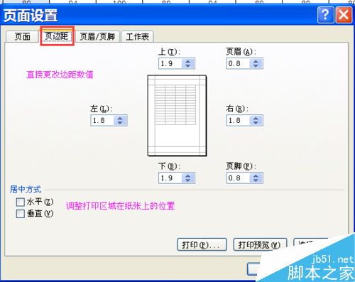 (1)进入方法:打印预览-页面设置;页面布局-页面设置