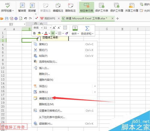 方式2、鼠标右键单击你所选中的单元格,在弹出的选项列表中鼠标左键点击【编辑批注】