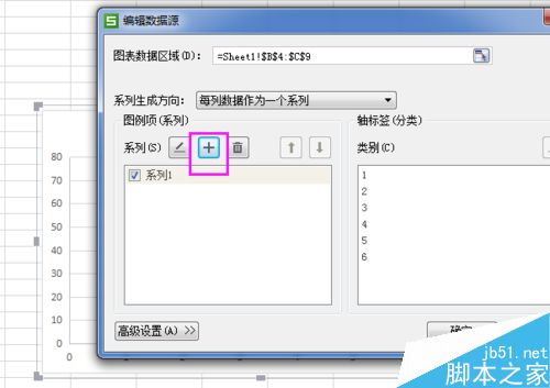 6、添加系列之后,需要添加系列名称,x数据以及Y数据。如下图添加系列名称为系列2,数据名字如d系列