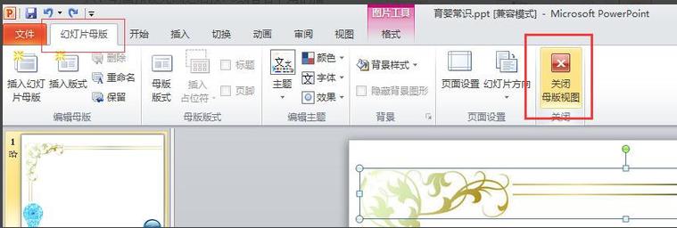 注意:一定要关闭母版,关闭之前注意保存,常按SHIFT+S是保存文档的快捷键,这是好习惯的养成哦!