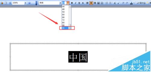 3、选择我们的文字,在上面的设置区里设置文字的大小为,如图所示: