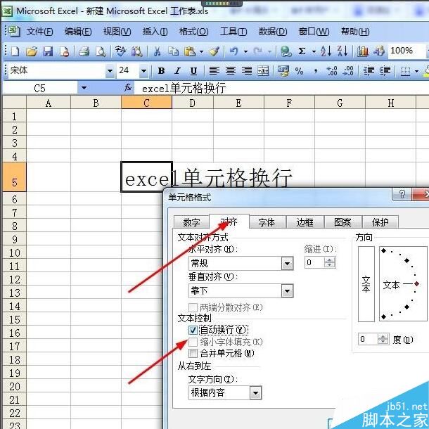 对齐——文本控制——自动换行——确定