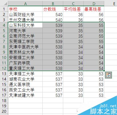 ● 选取相邻区域或整张表