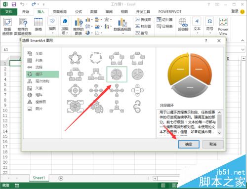 7、点击确定后,返回Excel表格,可看到插入的分段循环图形样式。如图所示;