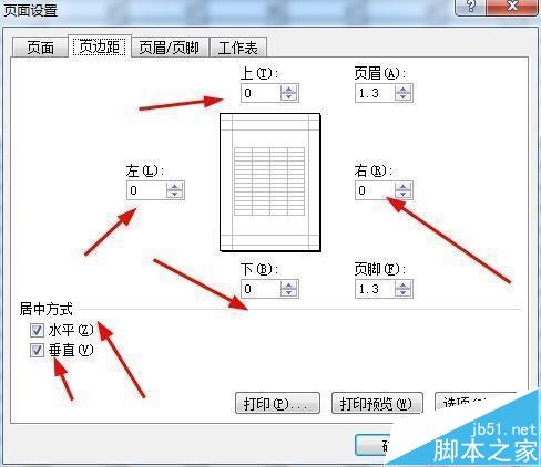 3、左右上下页边距均改为0,水平垂直居中——确定