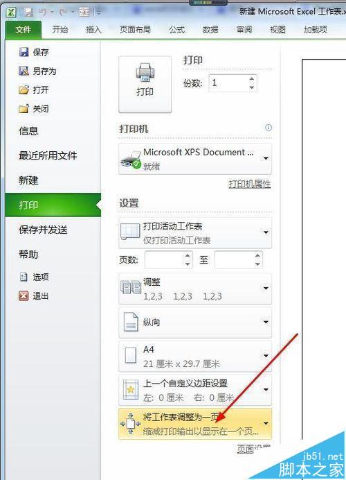 4、文件打印设置——将工作表调整为一页