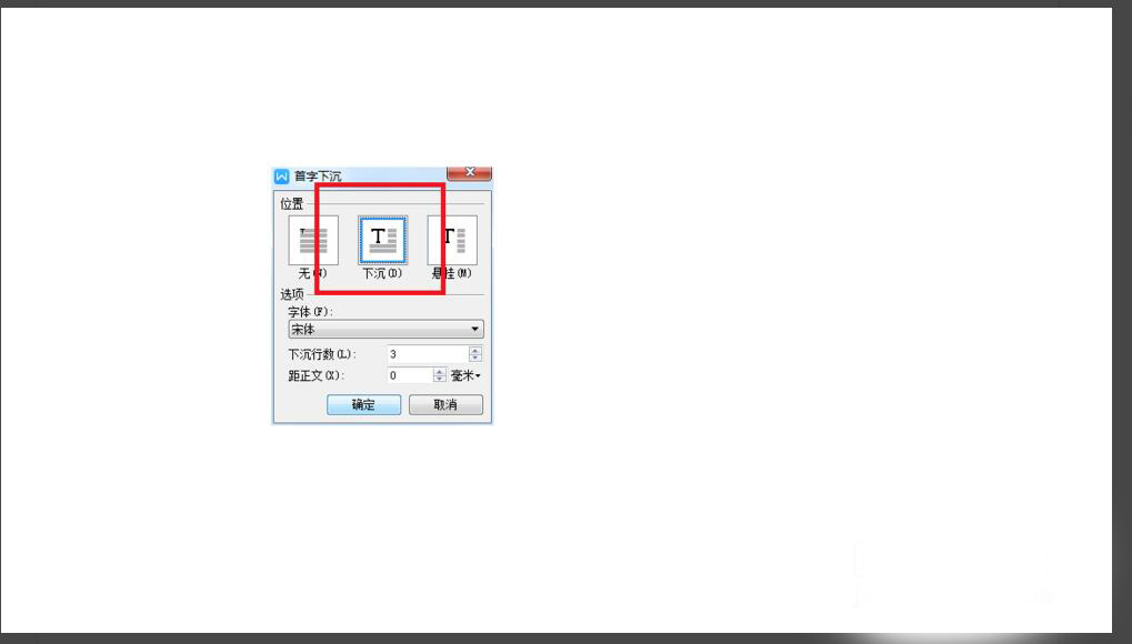 4、这时弹出“首字下沉”对话框如下