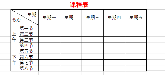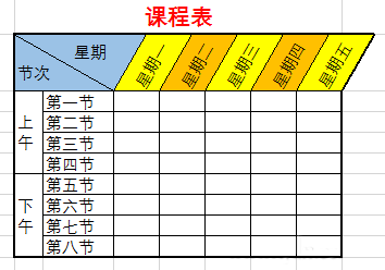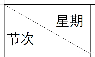 双击此单元格,输入项目名称“星期”,然后按Alt+回车键回行,再输入项目名称“节次”。选择左对齐,在上面的“星期”前适当加入空格,斜线文字也就设置完成啦。