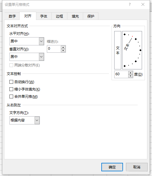 按Ctrl+1键调出单元格设置窗口,切换到“对齐”选项卡中,在文本方向中,设置文本倾斜的角度,也可以直接鼠标拖动设置,确定后就得到倾斜表头的效果啦。