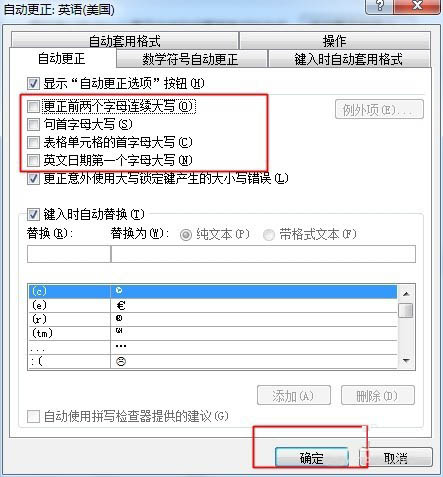7、确定。在确定。然后在word中输入字母或是单词后就不出现首字母大写了