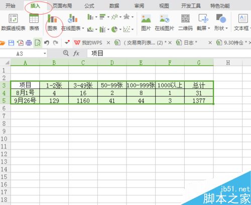 1、打开要插入图表的excel表,首先选中要做表格的数据区域。